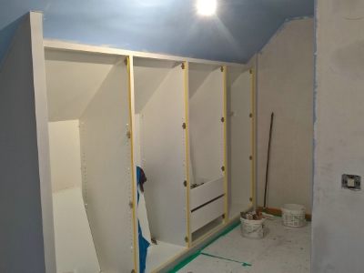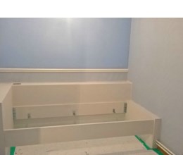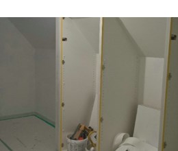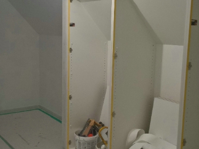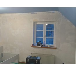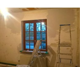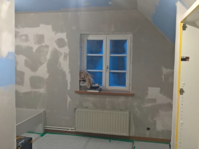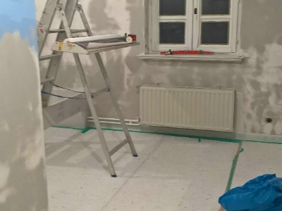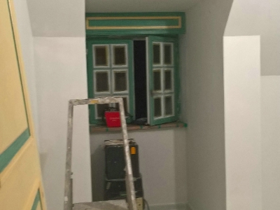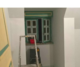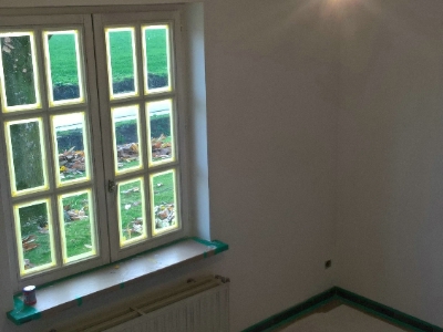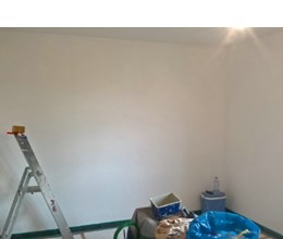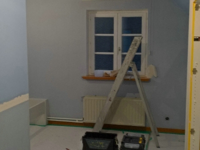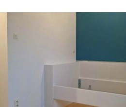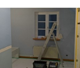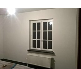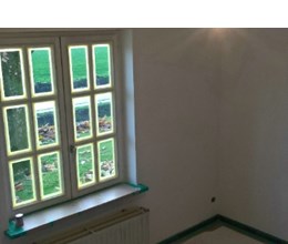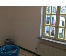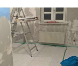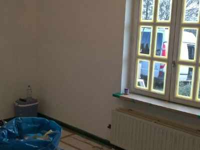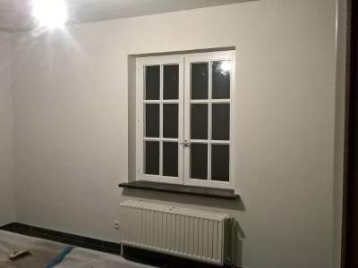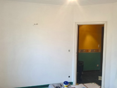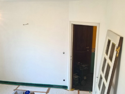 Uitgevoerde werken foto's : verwijderen vinyl / tasso behang - egaliseren muren - herstellen gyproc - plaatsen vliesbehang - opkitten van ramen tov houtwerk - schilderwerken muren & plafonds - lakwerk binnen schrijnwerk en maatkasten -lakken plinten - spuiten radiators - plaatsen van magnetische wanden verf