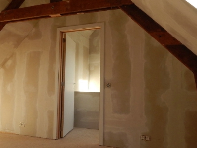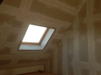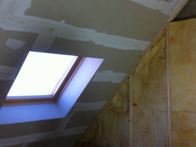 Het plaatsen van gyproc wanden en plafonds.
